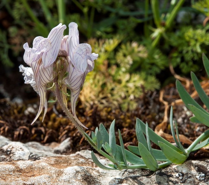 Blüten 19 - 26 mm lang, hellviolett, mit dunklen Linien, Kronröhre