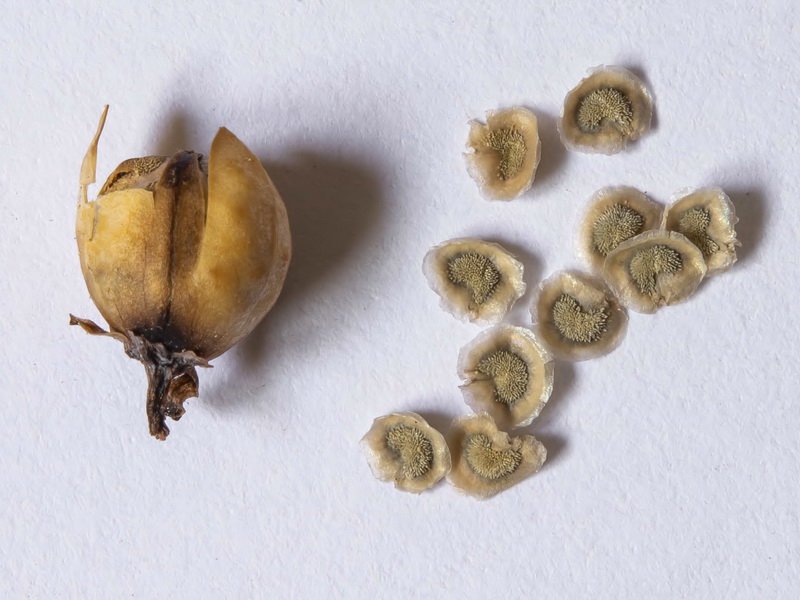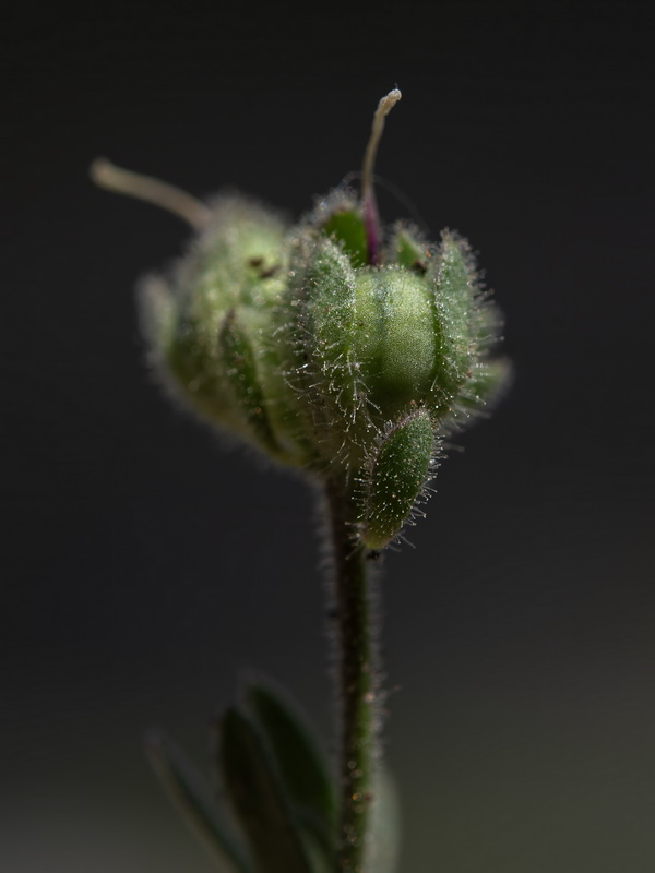 Kapsel kugelig, 4 - 7 mm im Durchmesser, drüsig behaart, von den Kelchblättern umgeben