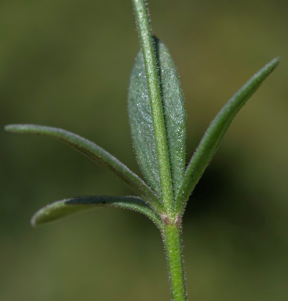 Blätter eilanzettlich, 3 - 15 mm lang, 1 - 5 mm breit, behaart