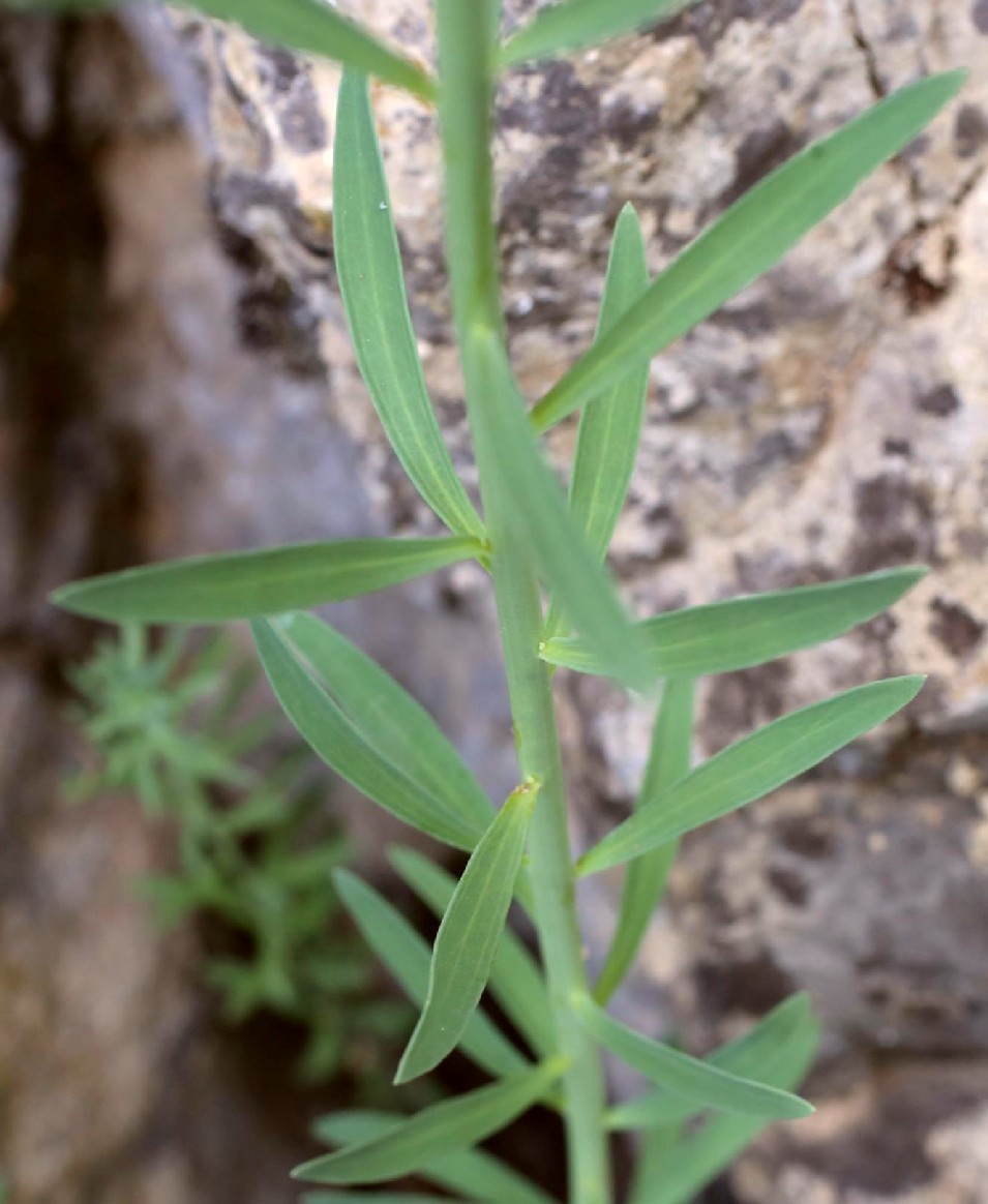 Früchte 1,25 - 1,4 mal länger als breit, 1,4 - 1,8 mal länger als die Fruchtstiele Mittlere Stängelblätter 15 - 25 mal so lang wie breit, +/- spitz