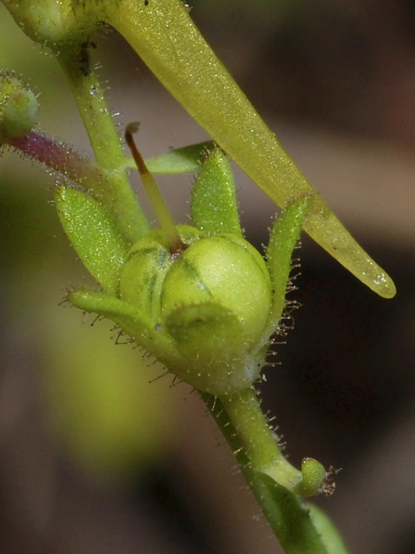 Kapsel kugelig, 3 - 5 mm im Durchmesser, kahl oder drüsig behaart
