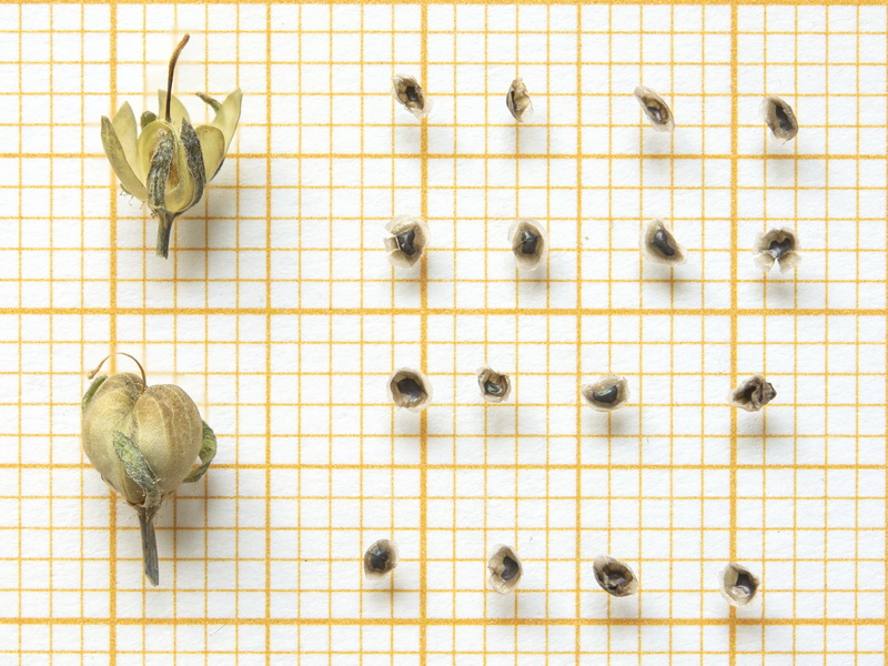 Samen geflügelt, 1,6 - 1,8 mm lang, Diskus nierenförmig, glatt oder spärlich