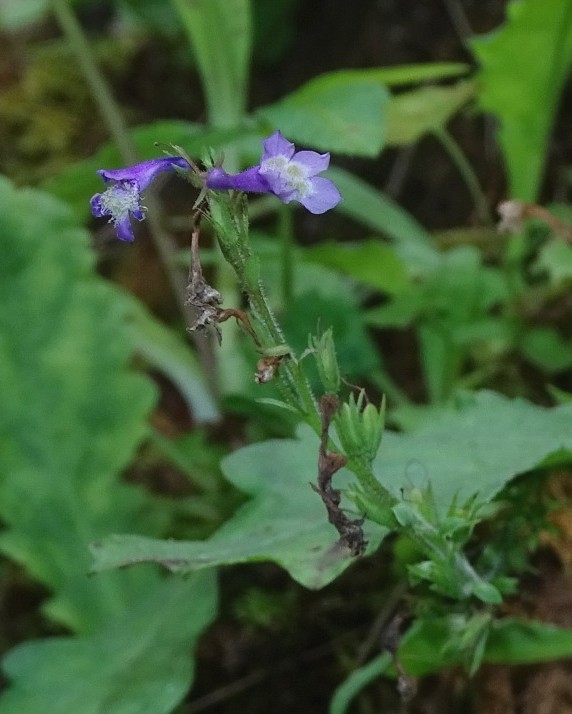 | Pflanze 10 - 20 cm hoch Blüten hellblau, Blüten, Kelch und Kapsel drüsig behaart Blätter behaart > 1