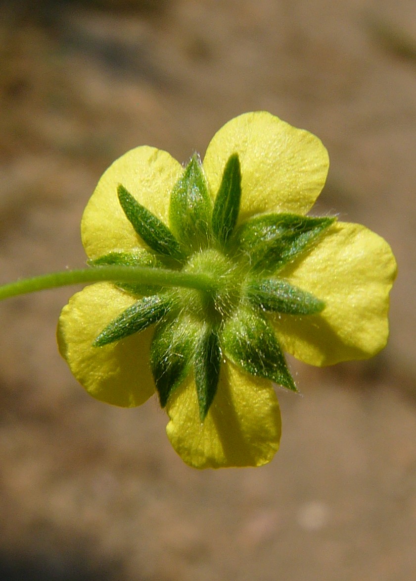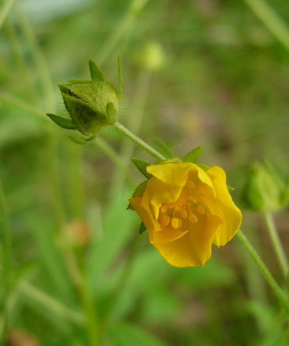 Blüten bis 22 - 25 mm im Durchmesser, Blüten je nach Unterart schwefelgelb oder dottergelb Kelch und Stängel abstehend behaart Stängelblätter 5 - 7- teilig Blütenstiel und Stängel grün, mit kurzen und