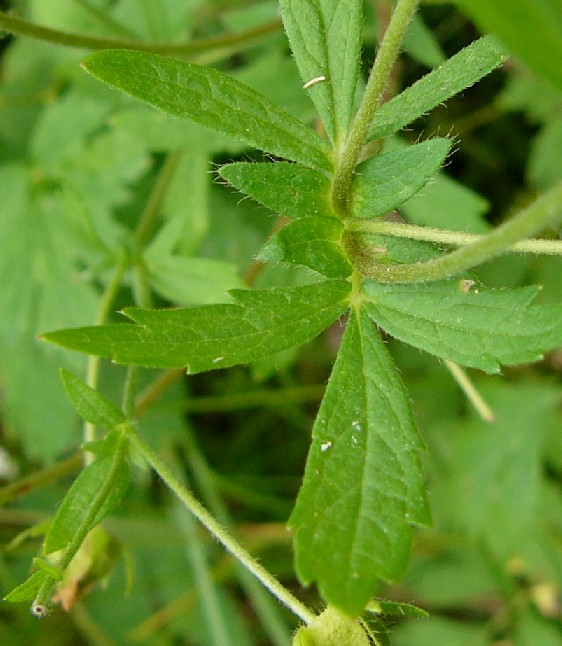 aufrecht Blüten 22 - 25 mm im Durchmesser Nebenblätter mit 3 - 5 Zipfeln Blätter 6 - 16 cm im Durchmesser Blättchen der Grundblätter tief gesägt, mit 10 - 25 Zähnen > 2 |
