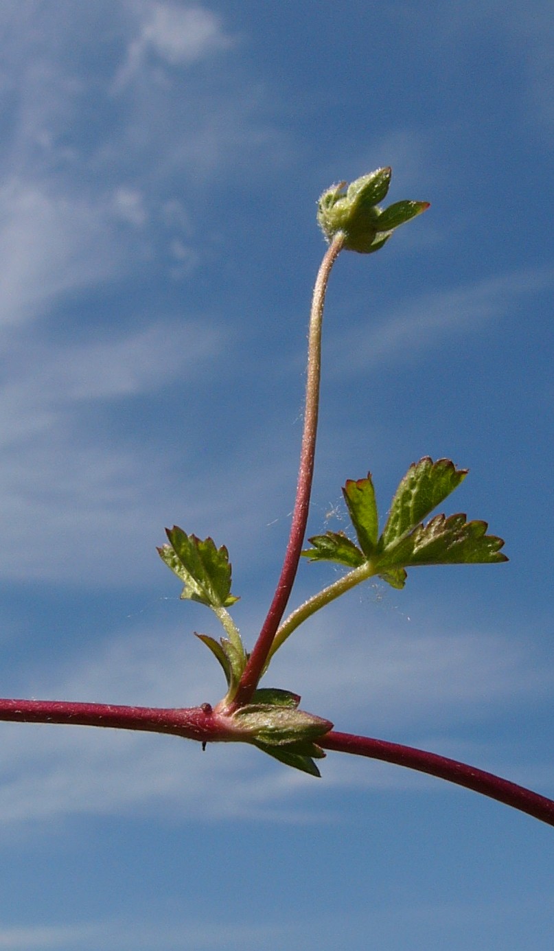 Pflanze bis 1 m lang Blüten einzeln, lang gestielt, an den Knoten der Ausläufer entspringend Blüten mit 5 ausgerandeten Kronblättern Kelchblätter deutlich kürzer wie die Kronblätter Stängelblätter meist 5- zählig, lang gestielt Blätter unterseits kahl oder schwach behaart