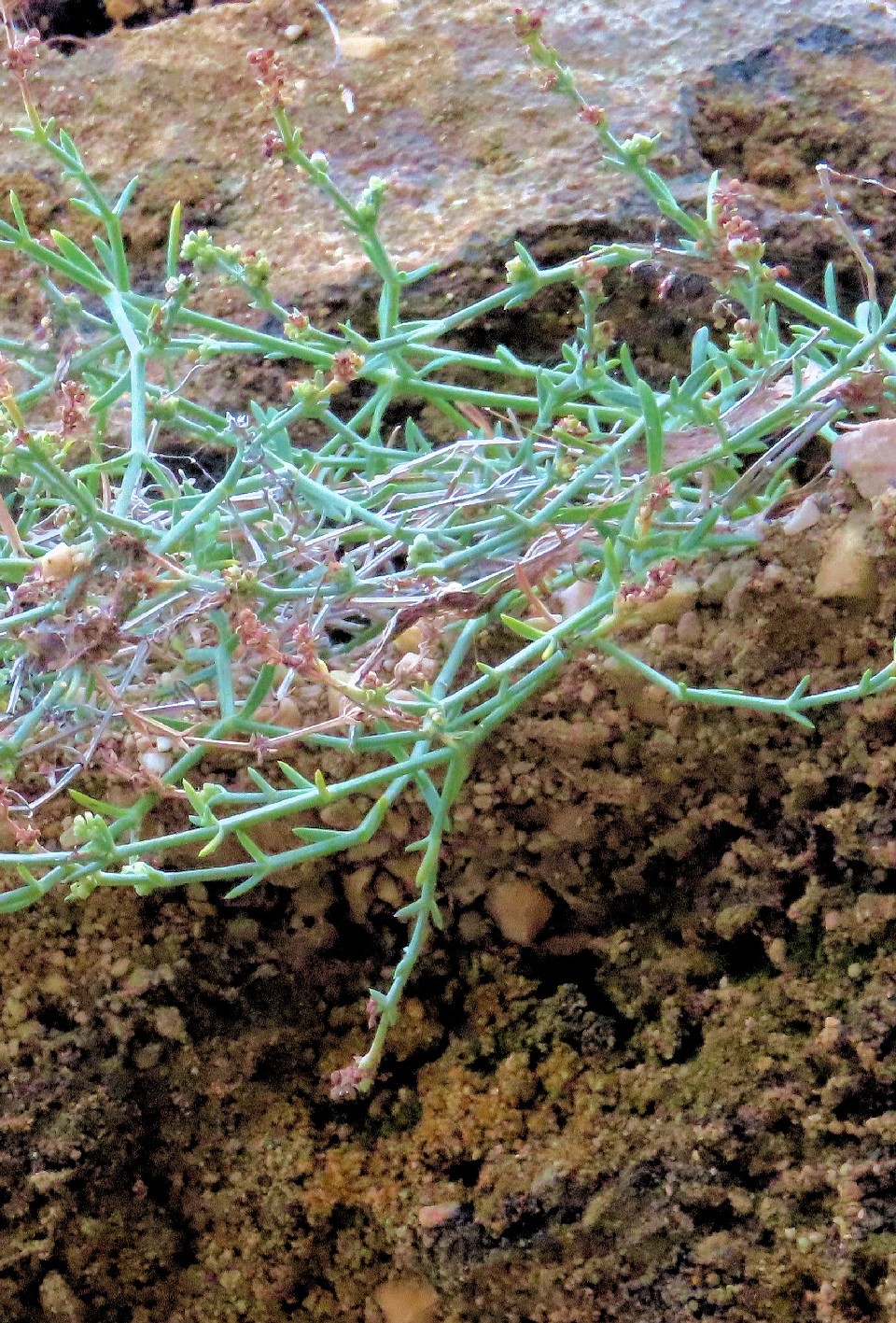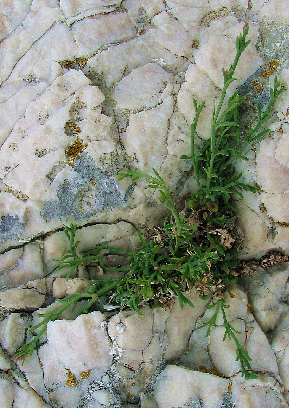 Stängel kahl, blaugrün, +/- fleischig, mittlere Internodien 2 - 3 mal so lang wie die Blätter, obere und mittlere Blätter gegenständig, linealisch- lanzettlich, 7 - 20 mm lang, 1 - 2,5 mm breit, blaugrün, kurz bespitzt