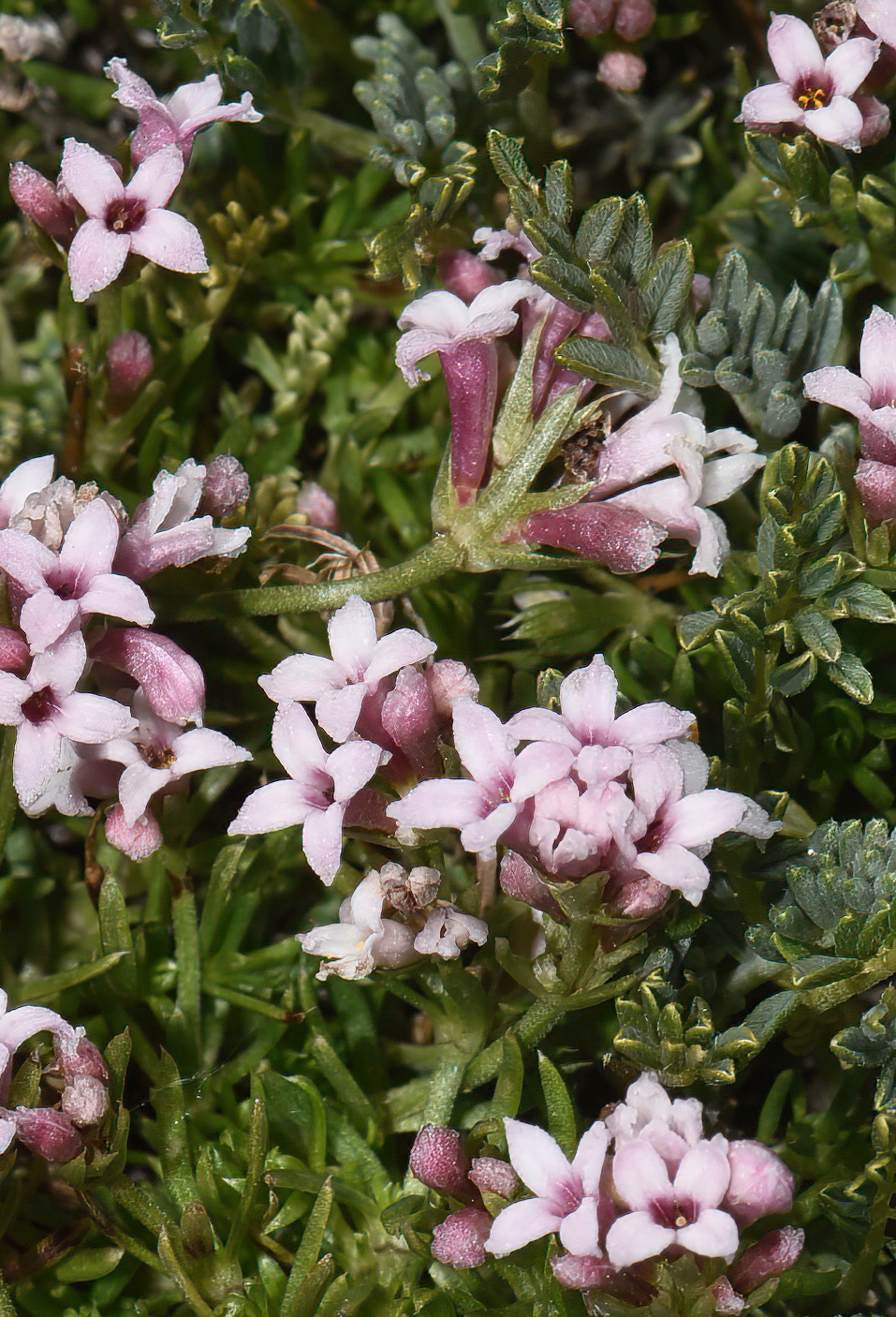 Blüten außen rosa,innen weiß, 3 - 6 mm lang, behaart, 4 spitze Kronzipfel