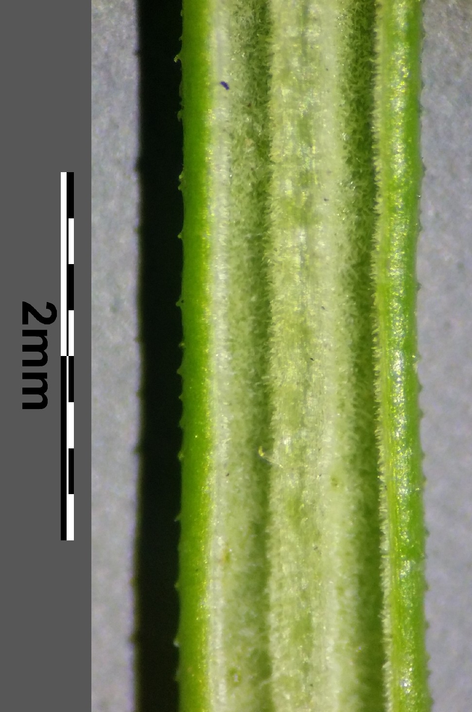 2 Stängel im mittleren und oberen Teil kurzhaarig, Blätter oberseits +/- dunkelgrün, zu 6 - 12, am Rand umgerollt, kahl oder behaart