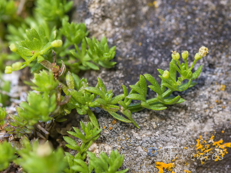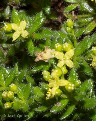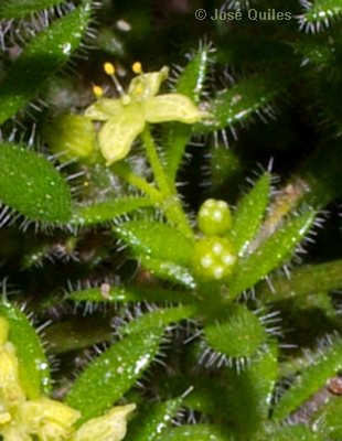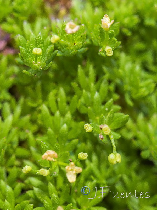 Blüten gelb, radförmig, 3 - 4 mm im Durchmesser, kahl
