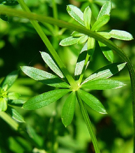 Blätter grün, klein, zu 5 - 8 im Quirl, mit 1 Ader,