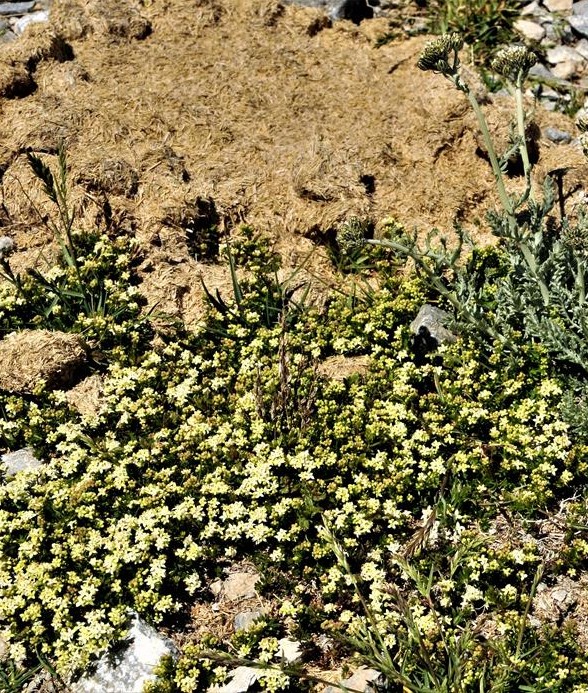 VII - IX, Alpine Matten (1800 - 2800 m) Synonyme: English name: Weltweite Verbreitung: 2n = 22 Etymologie: Die Unterart Galium anisophyllon ssp anisophyllon kommt nicht Nordmazedonien, Albanien Griechenland und Bulgarien vor und besitzt glatte Früchte und größere Blätter