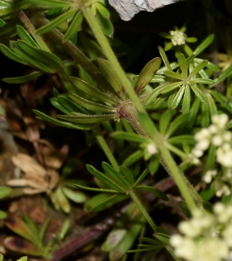 radförmig, Kronzipfel begrannt, Blätter 0,5 - 2 mm breit, Stängel behaart