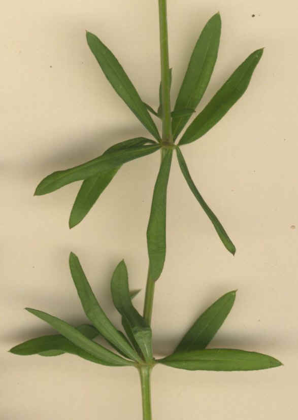 Blätter groß, zu 5 - 8 im Quirl, mit 1 Ader, eilanzettlich, 4 - 10 mm