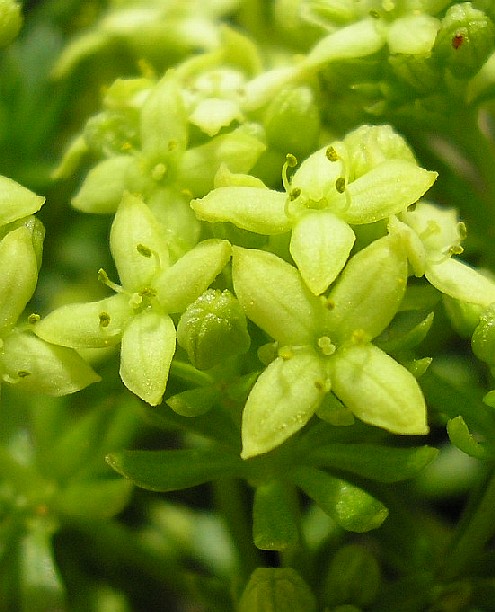 Blätter dicklich, zu 6 - 7 im Wirtel, am Rand oft fein gezähnt