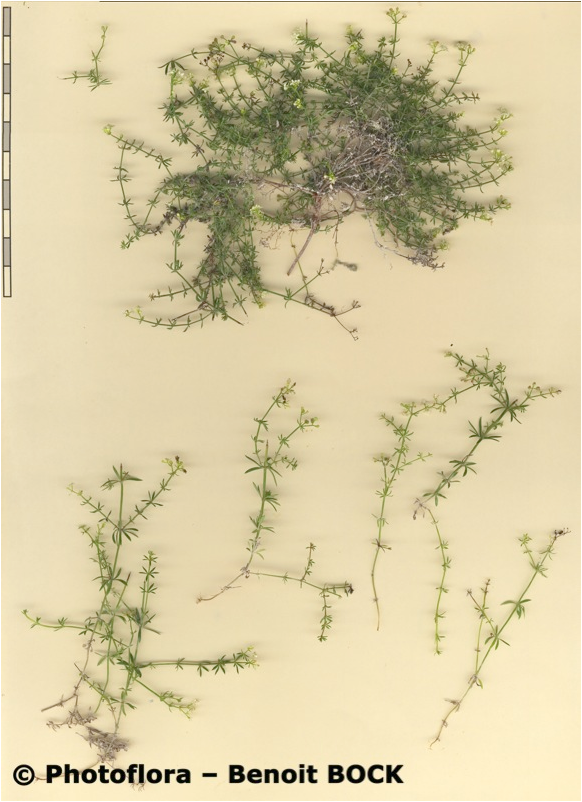 Stängel aufrecht, mittlere Internodien 2 - 5 mal so lang wie die Blätter, Blätter schmal linealisch, 10 - 16 mm lang, 1 - 1,6 mm breit, mit Grannenspitze und deutlichem Mittelnerv, zu 7 - 8 im Wirtel, oft sichelförmig gekrümmt