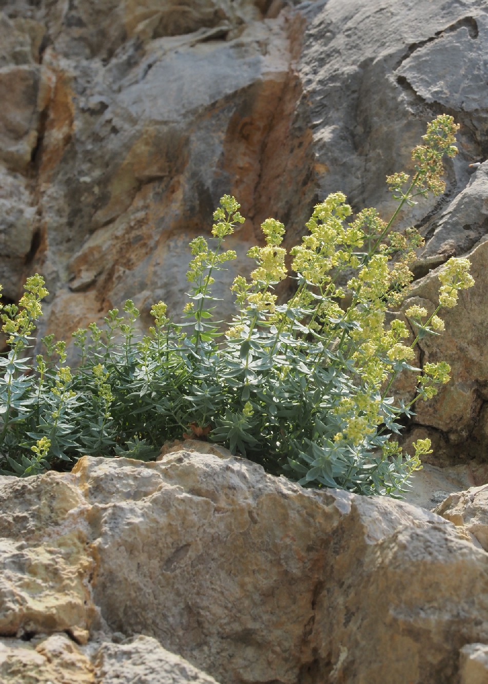 Galium - Blüten hellgelb, radförmig, Blätter blaugrün, elliptisch, 4 - 10 mm breit