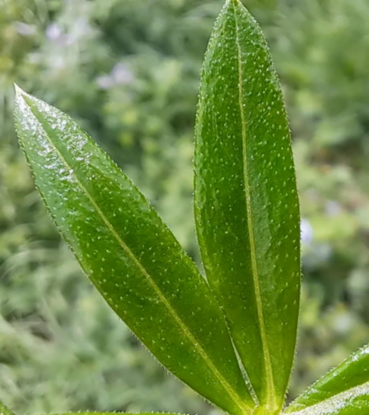 Blätter zu 6 - 8 im Wirtel, Blättchen 30 - 40 mm lang, 4 - 8 mm breit, eilanzettlich oder elliptisch