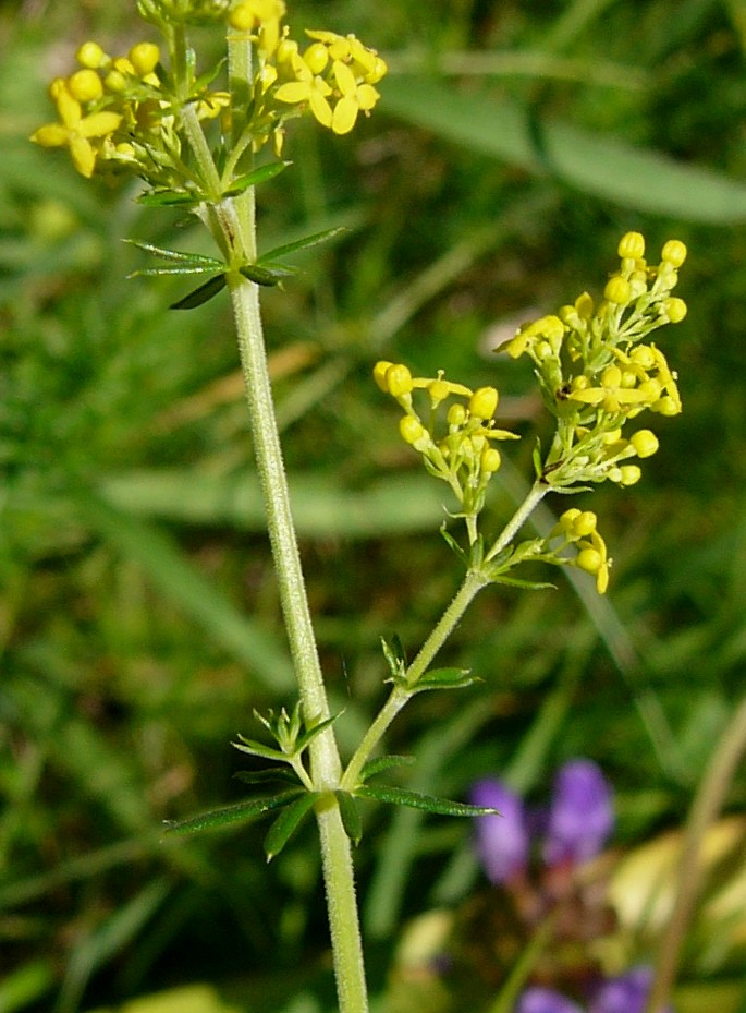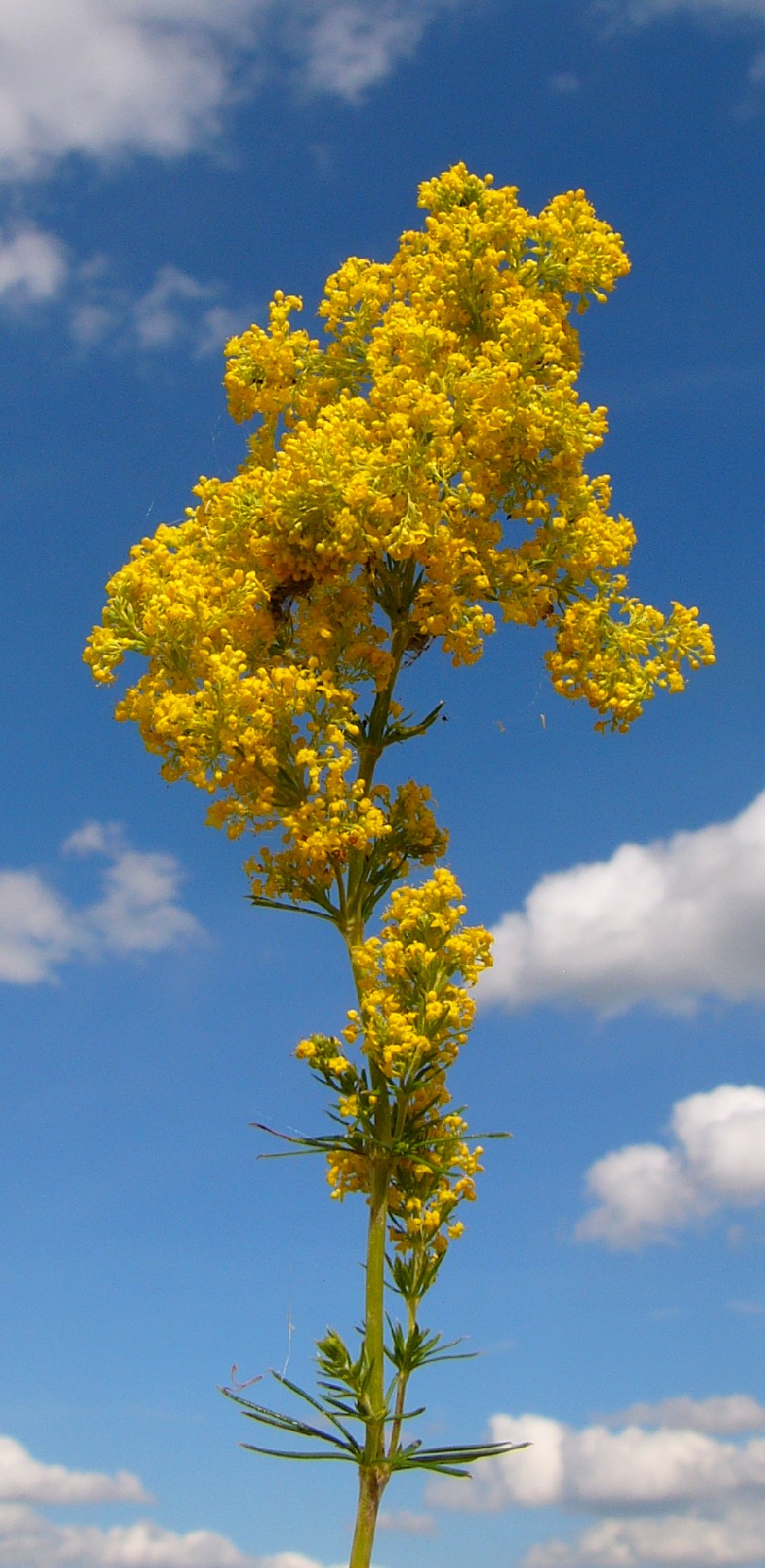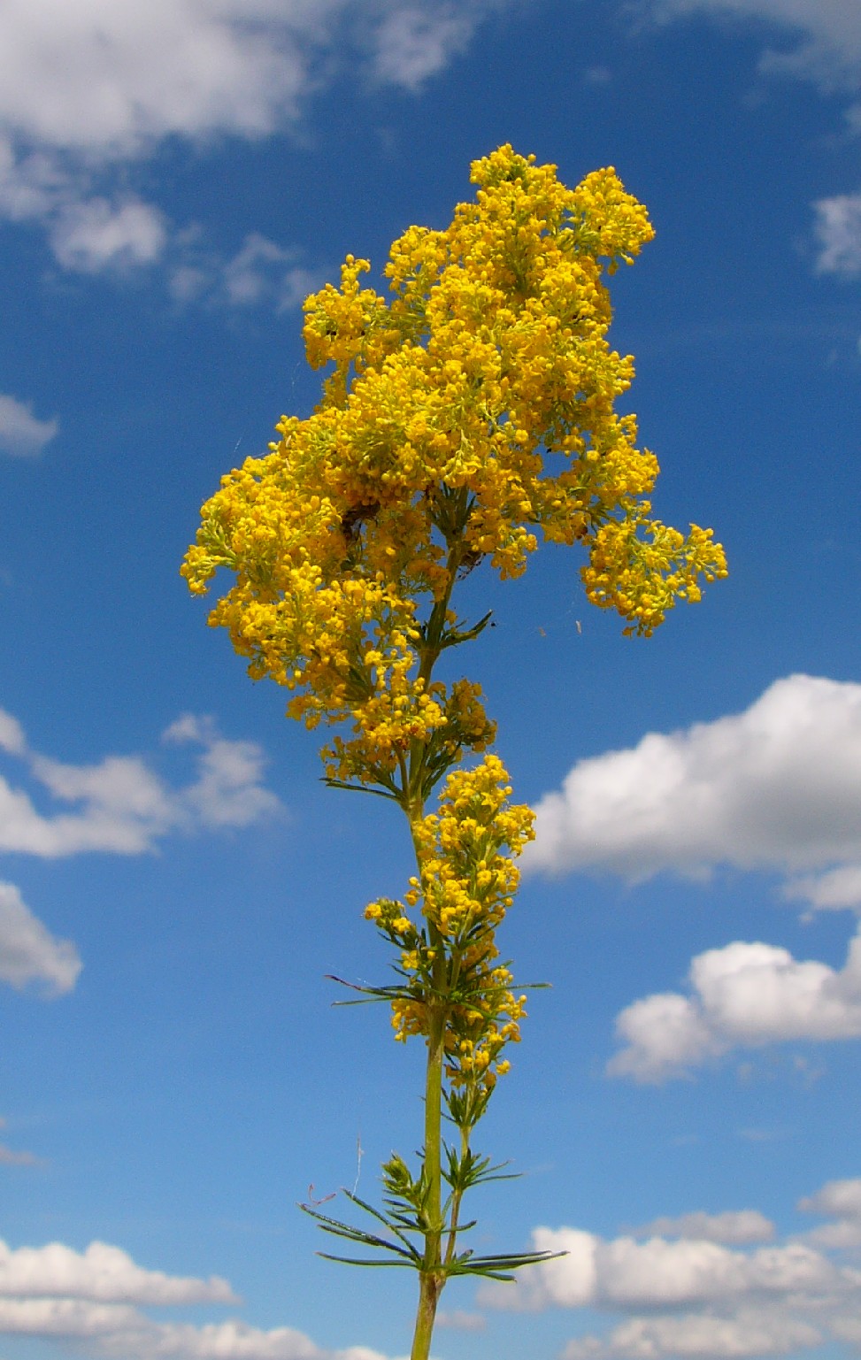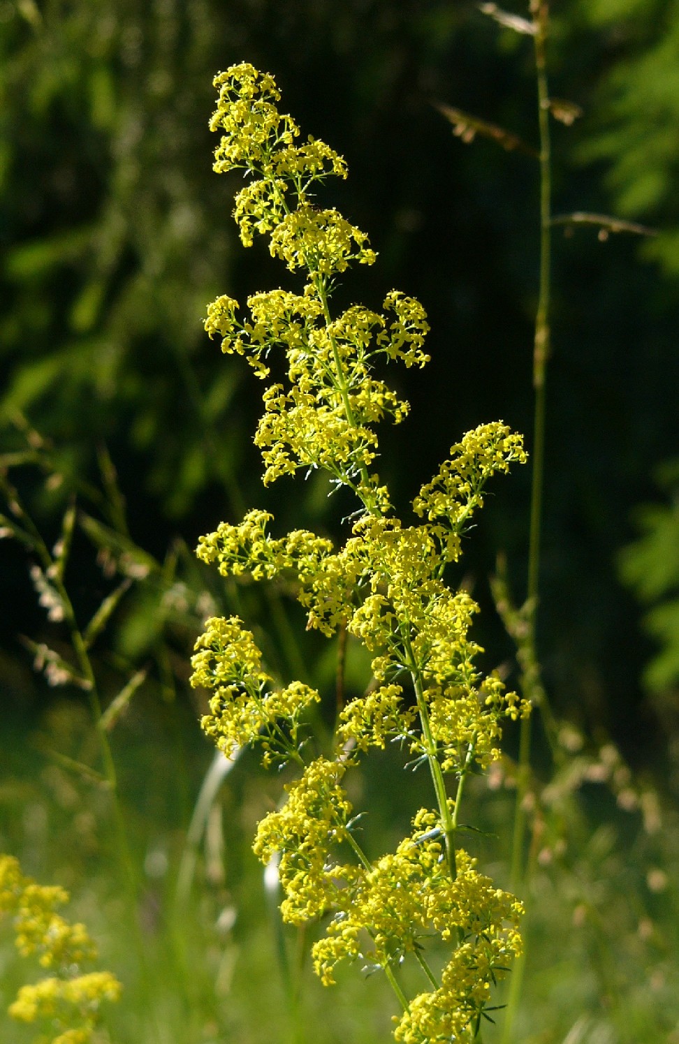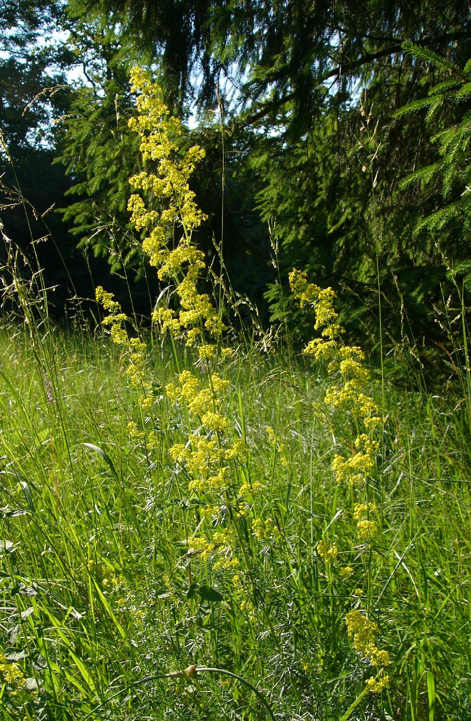 VII - IX, Trockenrasen, Wegränder, Moore (0 - 1800 m) Synonyme: English Name: Nom francais: Nome italiano: Verbreitung in Deutschland: Gefährdung in Deutschland: Weltweite Verbreitung: Eingebürgert in: Etymologie: Galium verum enthält das ein Enzym ähnlich dem Labferment, welches bei der Käseherstellung genutzt wird. Inzwischen wird das Ferment oft gentechnisch hergestellt. Für die Herstellung von englischem Chesterkäse wird das Kraut noch heute genutzt. Die Farbstoffe der Blüten geben dem Chesterkäse seine gelblich-orange Farbe und sind verantwortlich für den besonderen Geschmack. Bildet zusammen mit Galium album die Hybride Galium x pomeranicum
