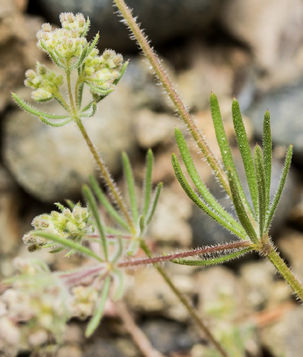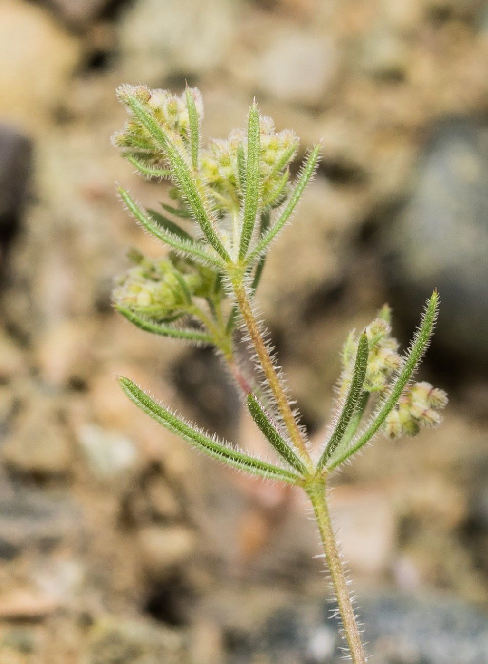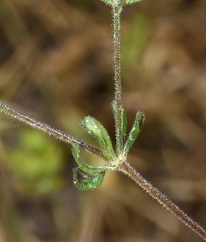 Blätter zu 8 - 12 im Quirl, 5 - 15 mm lang, 0,5 - 1,5 mm breit, mit bis zu 0,5 mm langem häutigem Spitzchen, am Rand umgerollt, mit vorwärts gerichtete Zähnchen, kahl oder behaart