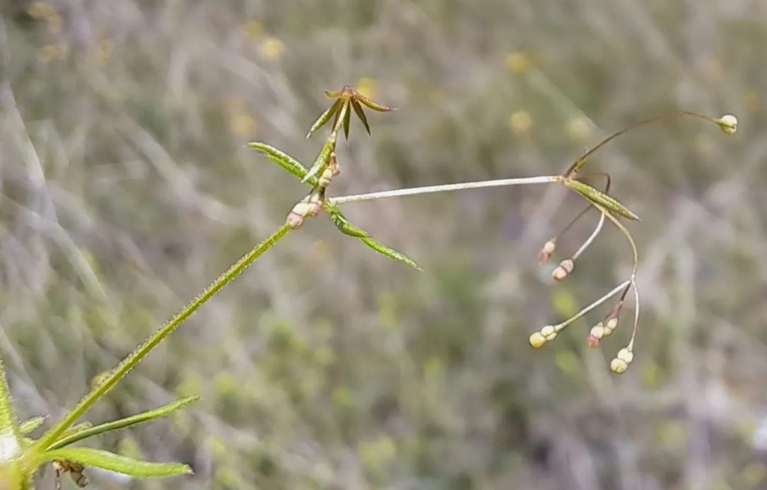 Teilblütenstände mit 5 - 13 Blüten, Stängel der Teilblütenstände 5 - 20 mm lang, 3 - 7 mal so lang wie die fädlichen, 1 - 2,5 mm langen Blütenstiele