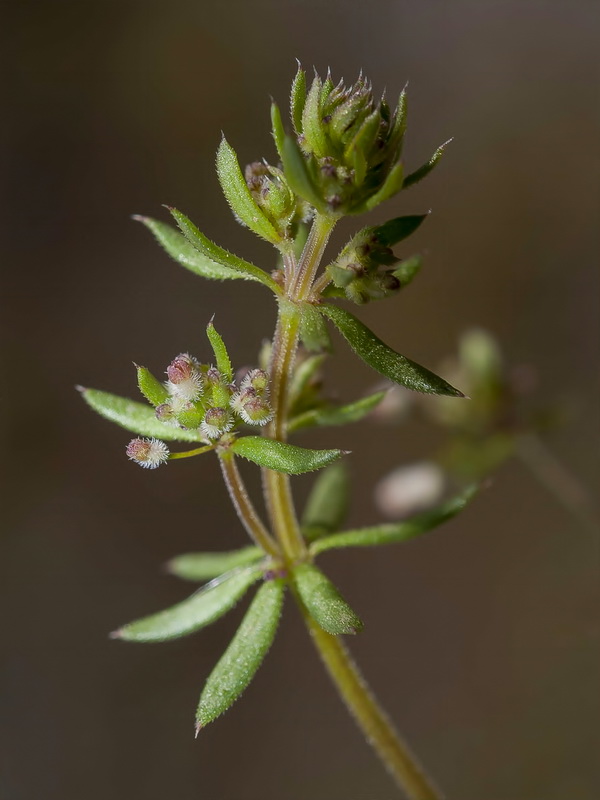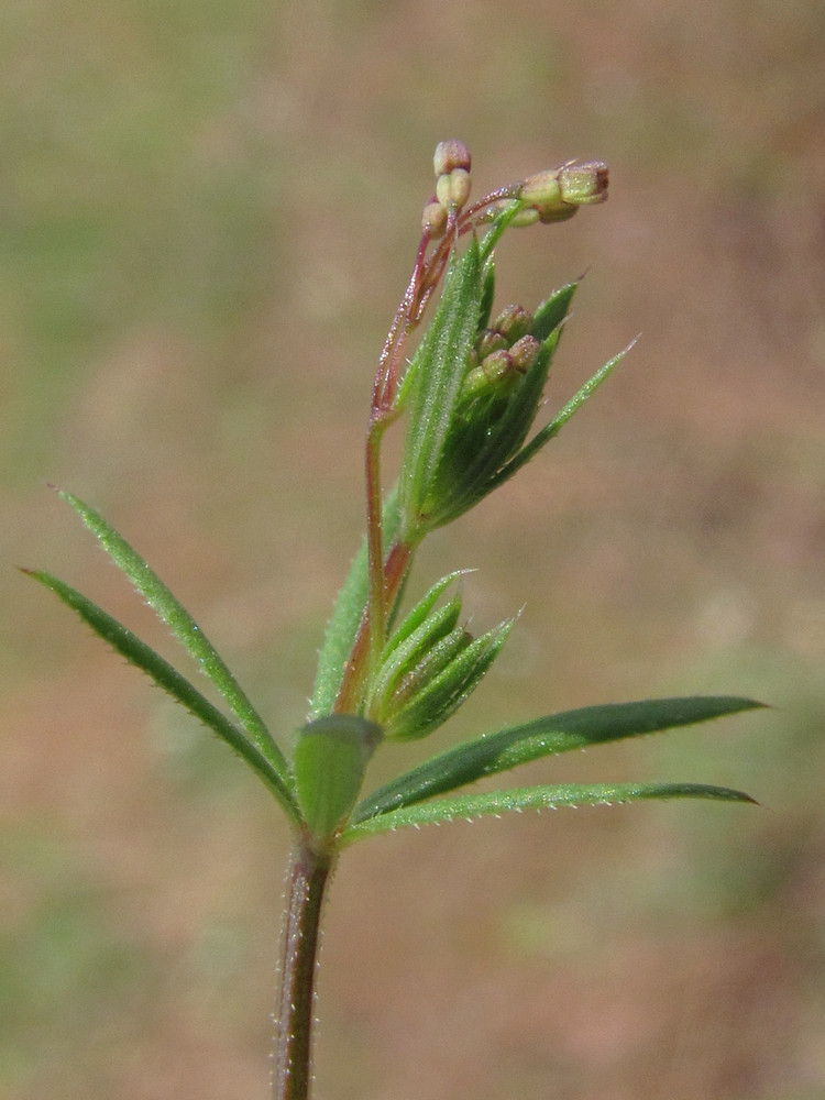 Blätter schmal lanzettlich, 3 - 12 mm lang, zu 6 - 8 im Quirl, mit Stachelspitze, am Rand durch vorwärts gerichtete Stacheln rau