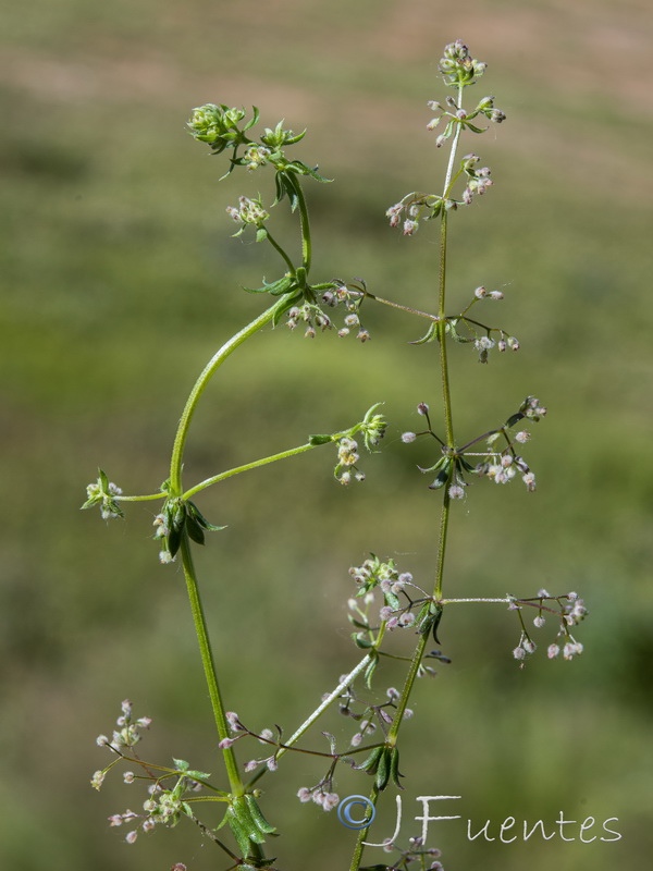 Stängel vierkantig, schlank,im oberen Teil fast glatt, im unteren Teil weniger dicht mit Stacheln besetzt als Galium parisiene