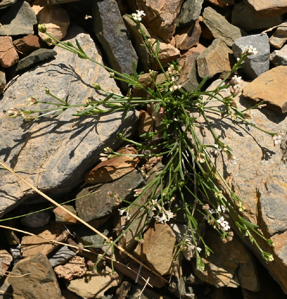Früchte ca. 2 mm lang, runzlig Stängel glänzend, 10 - 30 cm lang, Internodien, kürzer oder länger als die Blätter, obere und mittlere Blätter 8 - 17 mm lang, 1 - 1,5 mm breit, schmal spatelförmig, vorne verbreitert, mit Spitzchen, meist kahl, untere Blätter 2 - 8 mm lang, 1 - 2 mm breit