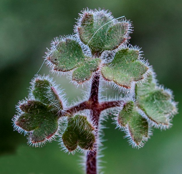 Grundblätter 2- fach dreiteilig, mit langen Drüsenhaaren