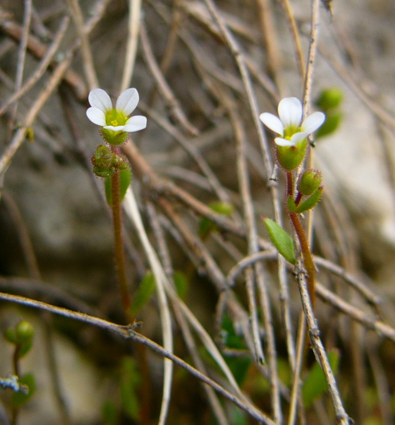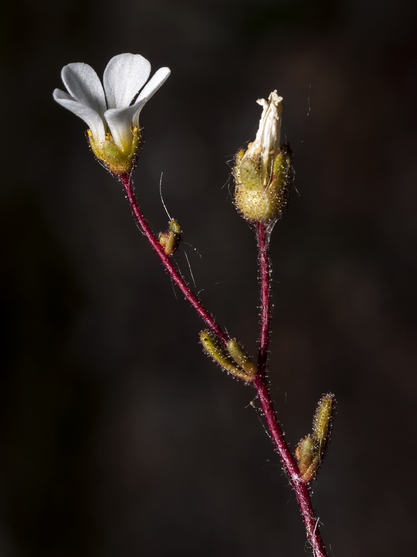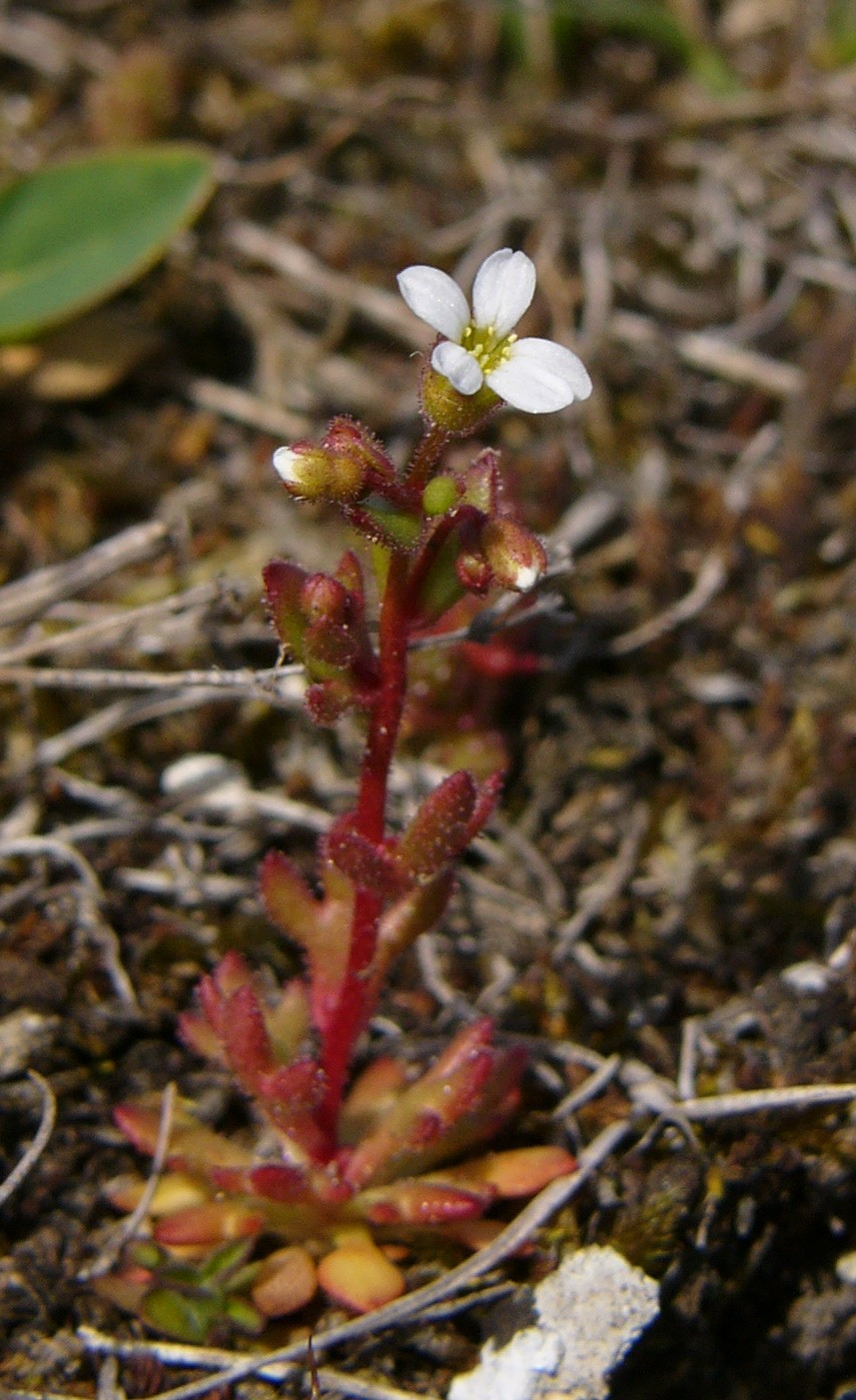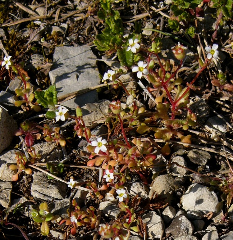 Pflanze 2 - 20 cm groß, Kronblätter weiß, 2 - 4 mm lang Kelch drüsig, Stängel drüsenhaarig, meist rot Stängelblätter sitzend, etwas fleischig, ganzrandig oder 3-lappig, drüsig Kapseln eiförmig, Samen braunschwarz