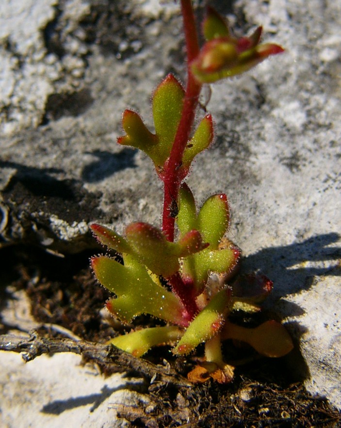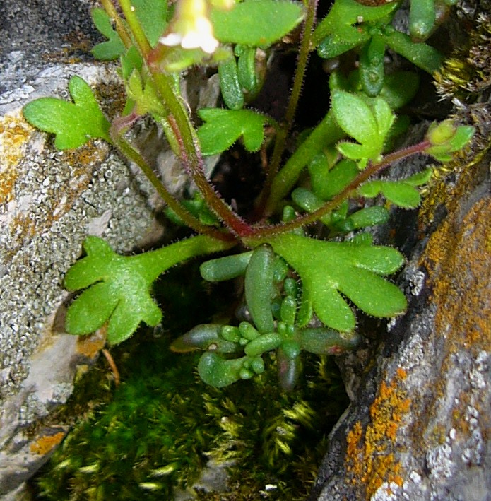 Endemit in Südspanien In den Achseln der Grundblätter befinden sich unterirdische Bulbillen Stängel und Blütenstiele schlank, Kronblätter 5 - 7 mm lang Grundblattrosette zur Blütezeit vorhanden, alle Blätter dreilappig > 1