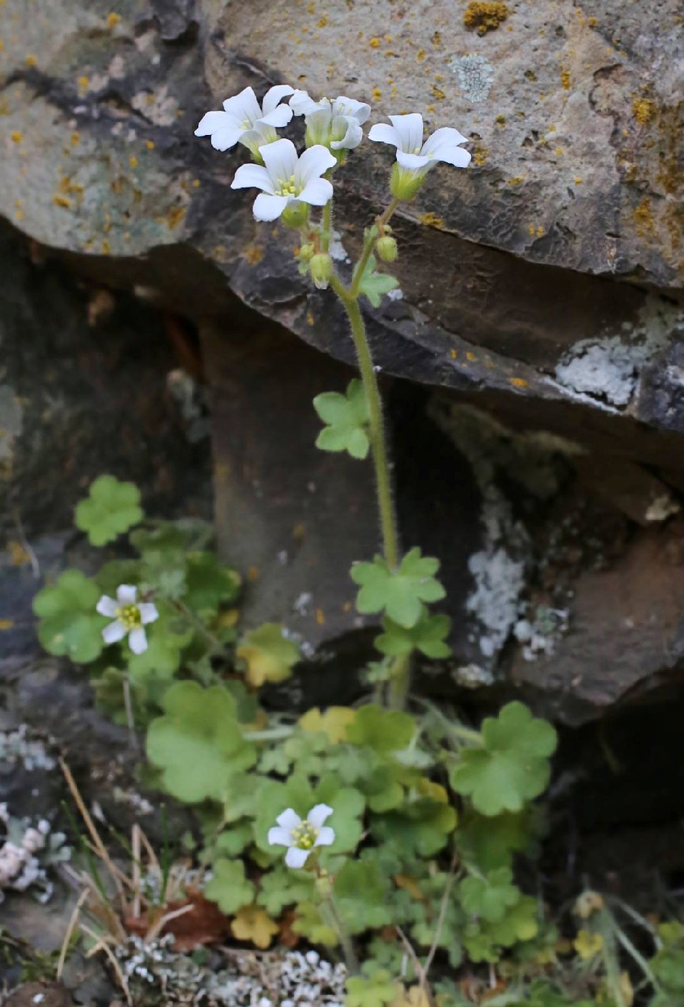 Stängelblätter 1 - 9 mm lang gestielt, nierenförmig, gelappt