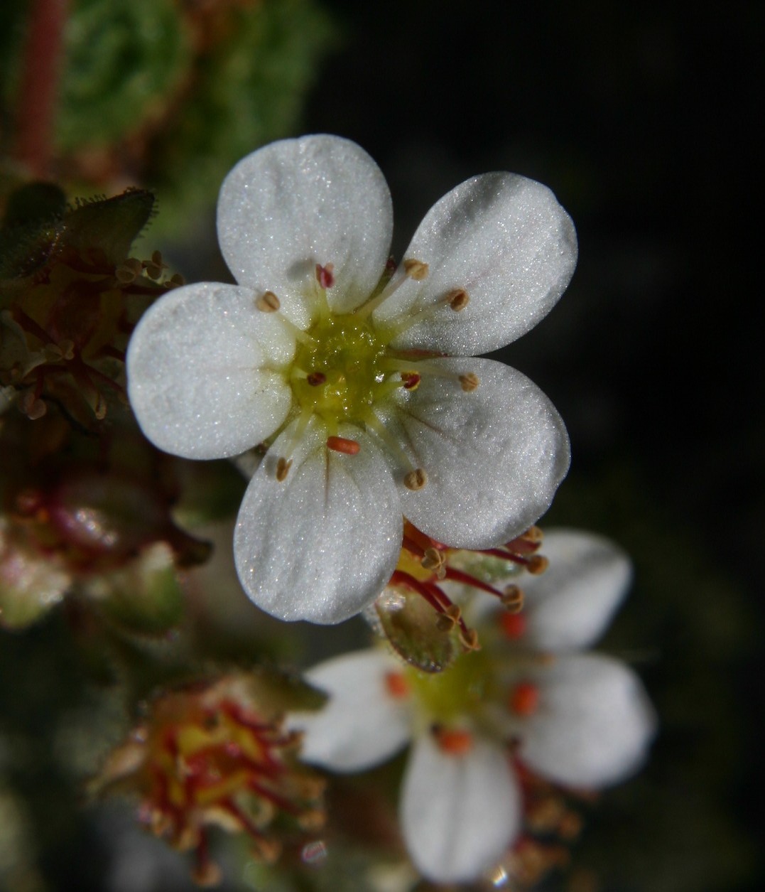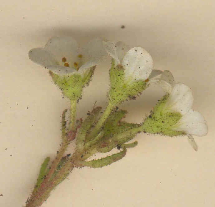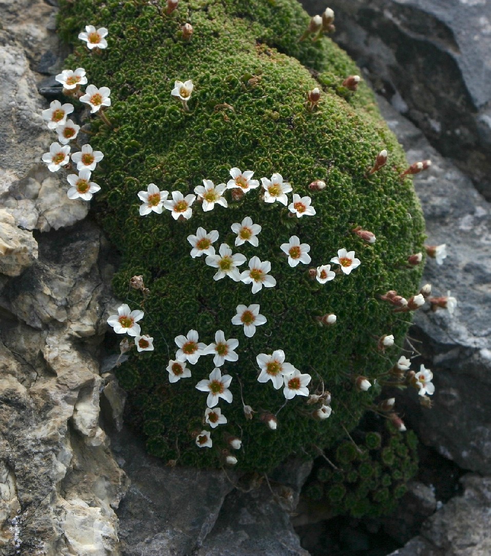 Saxifraga - Pflanze mit sterilen Trieben, Blüten weiß, ohne Punkte,