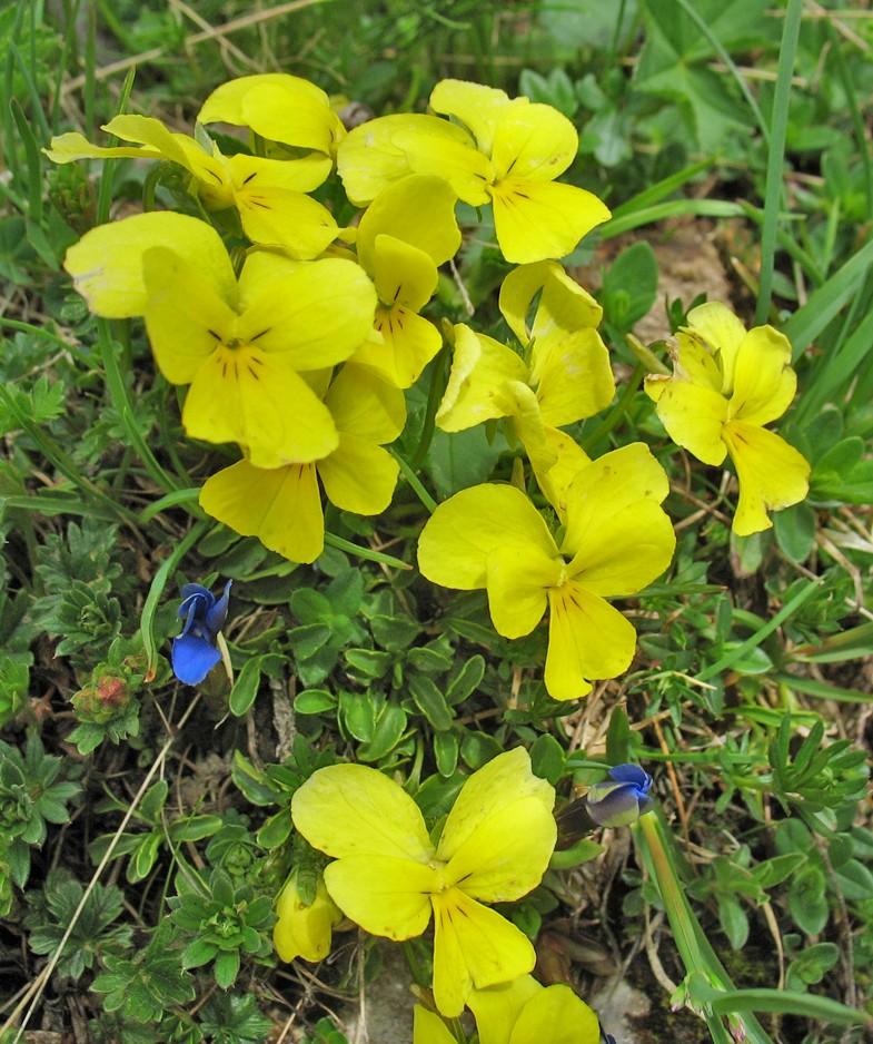 Krone gelb oder violett Stämmchen bis 5 cm lang, 1 - 2- blütig, Nebenblätter eiförmig, meist mit 2 groben Zähnen Verbreitung: Zentral- und Westalpen > 5