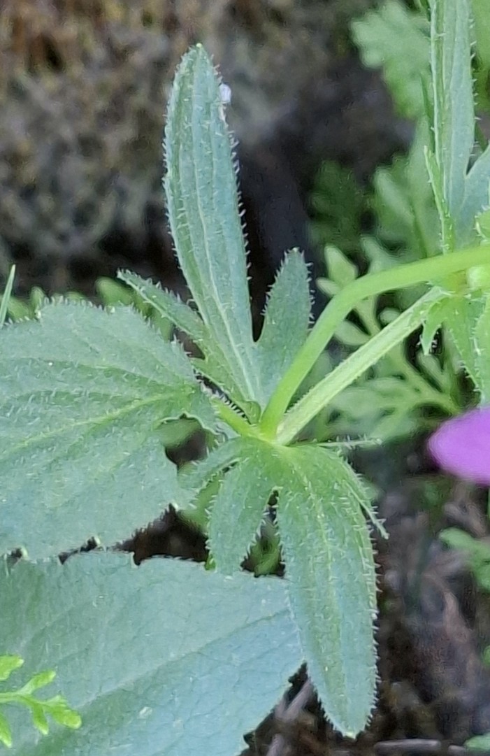 2 Nebenblätter handförmig geteilt, Abschnitte linealisch, fast bis zum Grund eingeschnitten