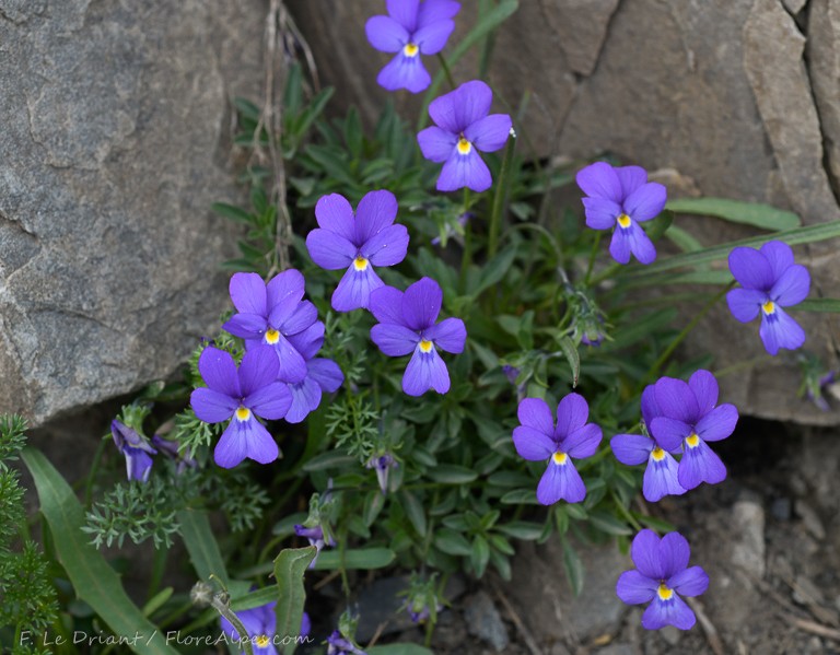 Endemit der Seealpen Blätter behaart, Nebenblätter handförmig geteilt, mit 5 - 7 Zipfeln Sporn gebogen > 1