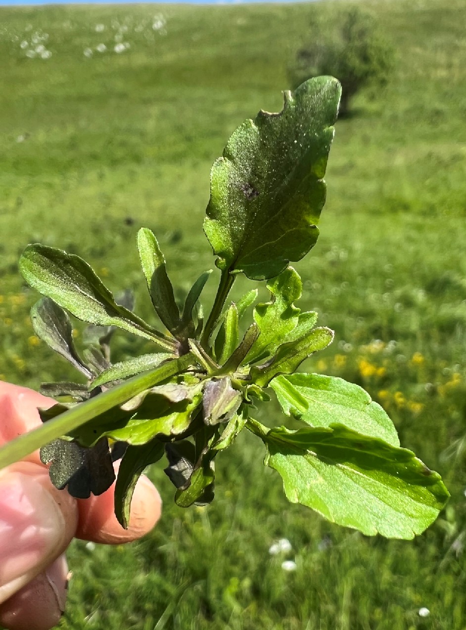 Blätter gestielt, Blattspreite eiförmig, gekerbt, vorne abgerundet,