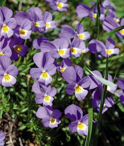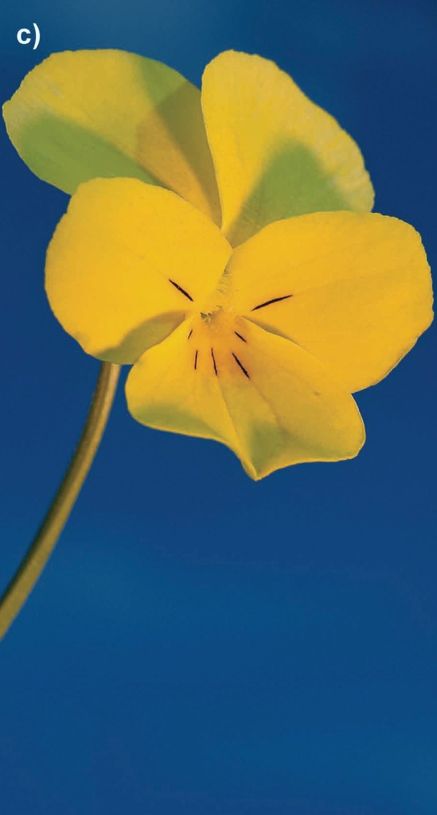 Blüten gelb, hellblau oder violett, Seitliche Kronblätter aufwärts,