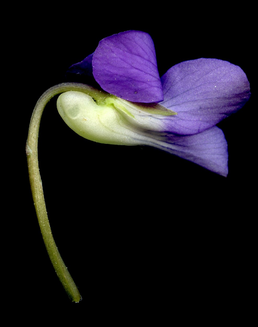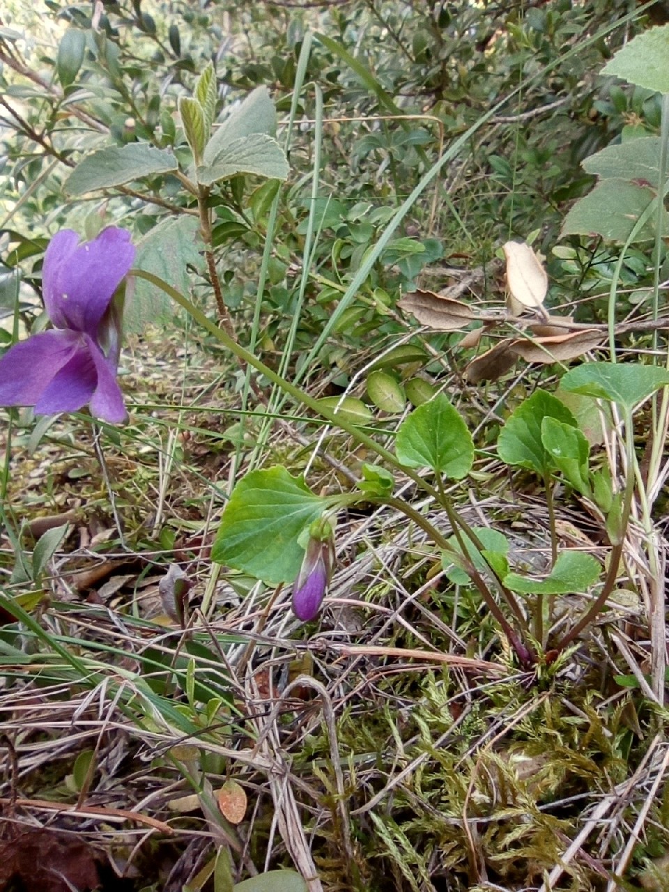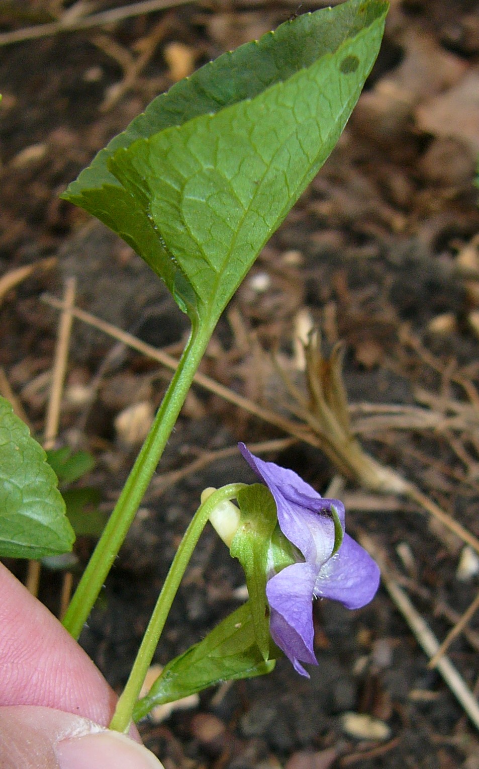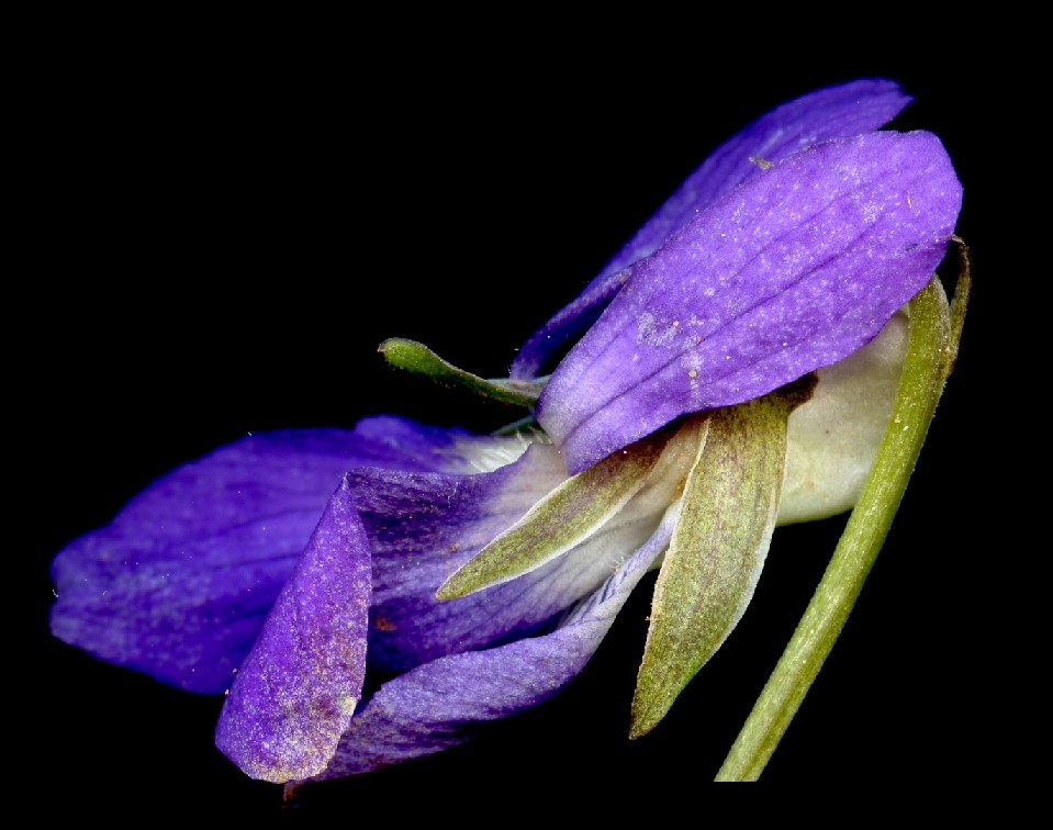 Viola - Kelchblätter spitz, Blüten +/- blauviolett, Sporn weiß, Grundblattrosette vorhanden, Nebenblätter ohne Fransen