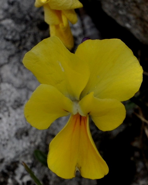 Blütenstiel 5 - 17 cm lang, Blüten violett oder gelb, in der Aufsicht meist länger als breit, Blätter spatelförmig, kahl > 2