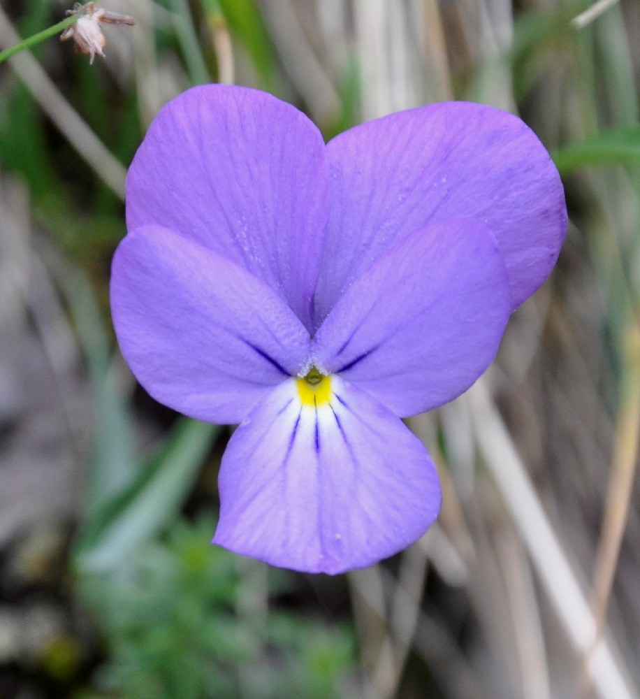 Blütenstiel sehr kurz, Blüten deswegen oft auf Bodenniveau Blüten hellviolett, in der Aufsicht oft breiter als lang, Blätter eirundlich, behaart > 1