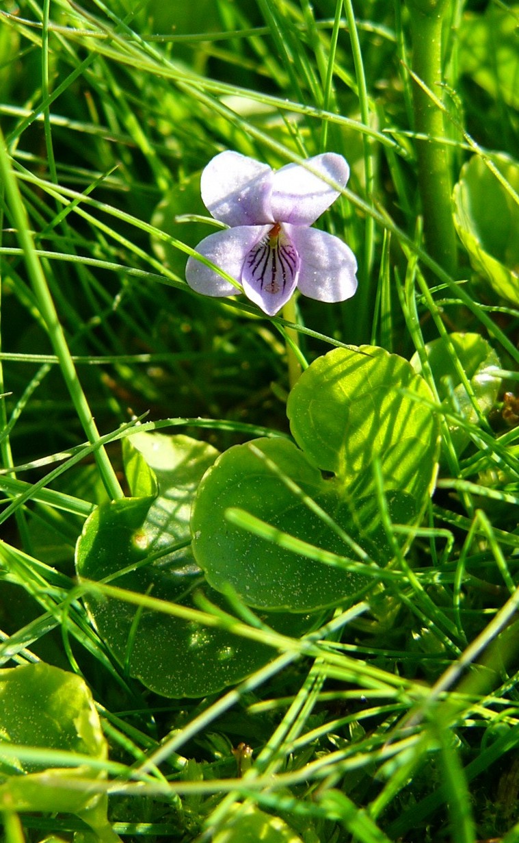 Blüten 15 - 20 mm lang, Kronblätter blassviolett,