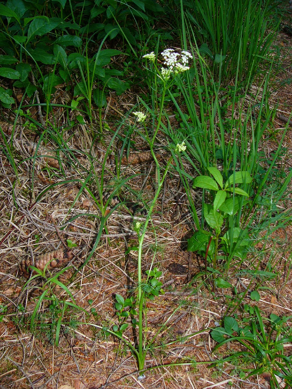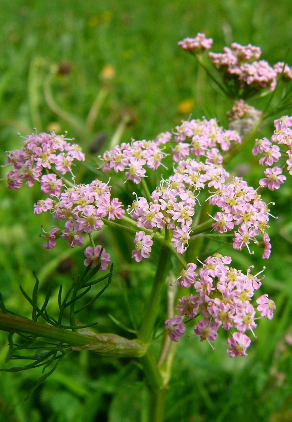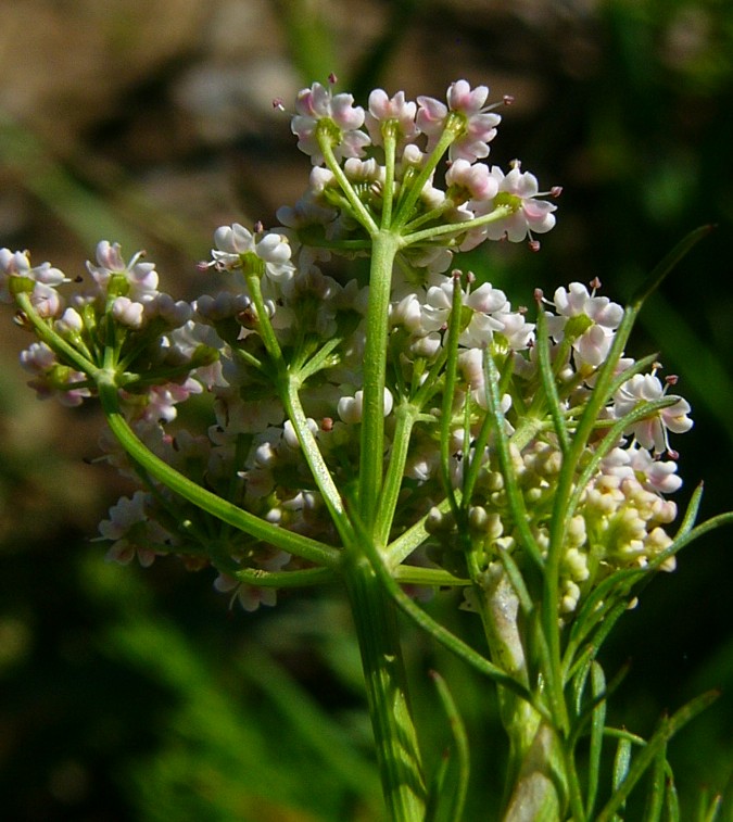 Pflanze 30 - 80 cm, sparrig verzweigt Dolden 8 - 15- strahlig Dolde oft ohne Hüllblätter oder Hüllblätter linealisch, bald abfallend
