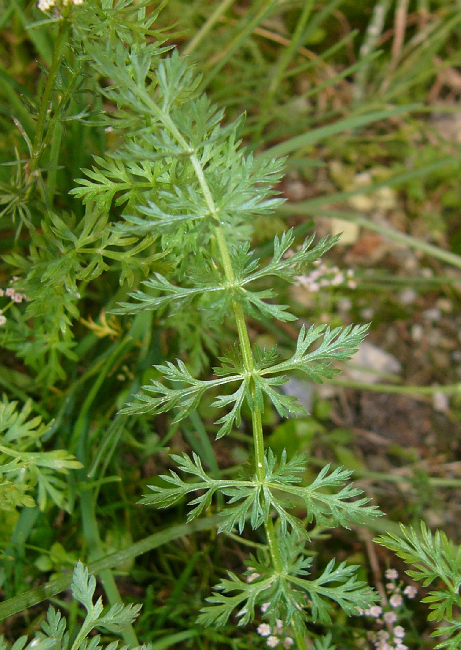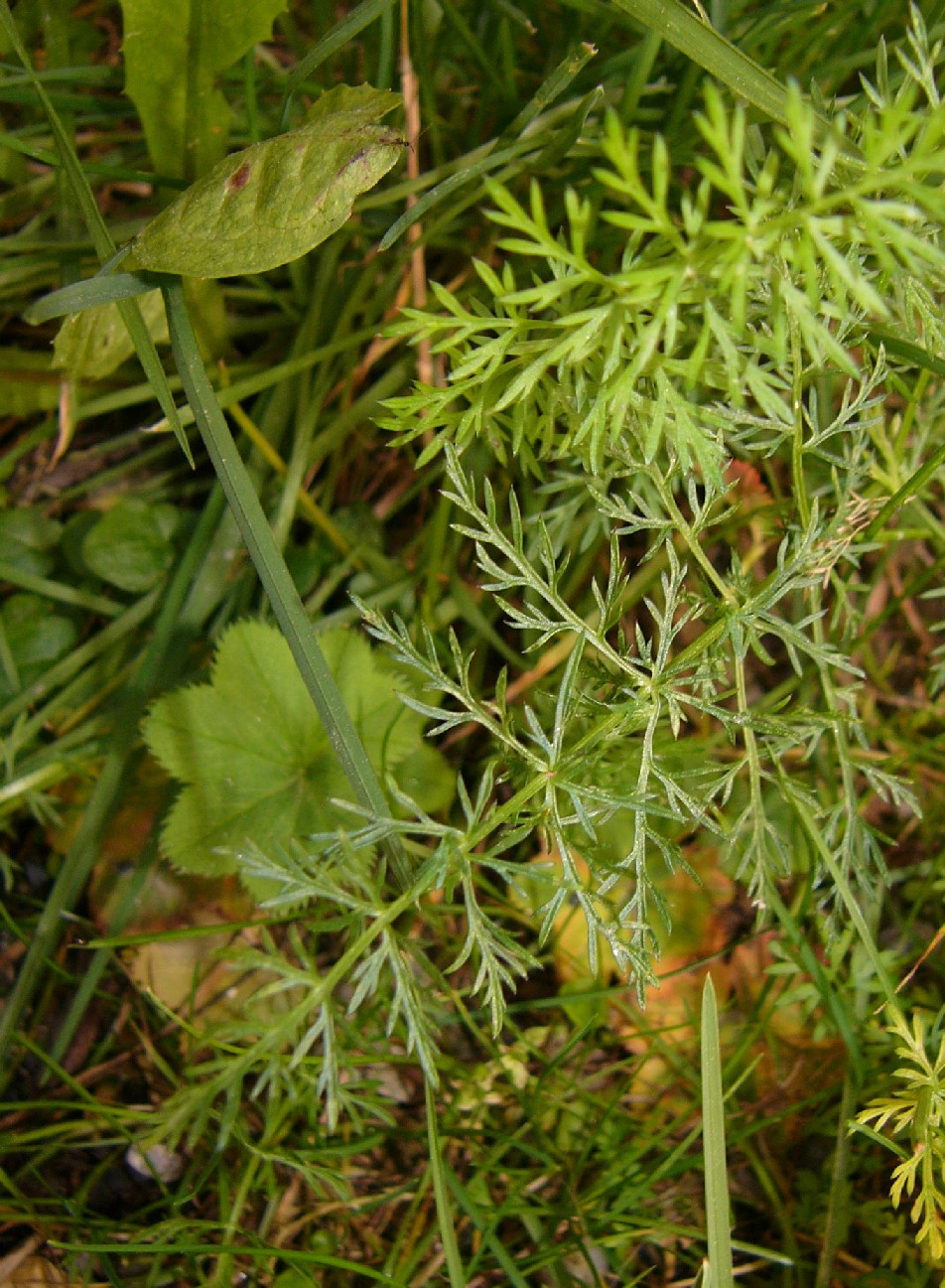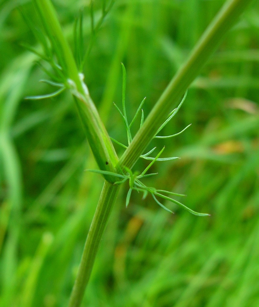 Scheiden der Stängelblätter mit fädlichen Blättchen Stängel mit 2 - 3 Grundblättern, Grundblätter im Umriss eifömig bis dreieckig, 60 - 160 mm lang, 30 - 70 mm breit, 2 - 3- fach gefiedert