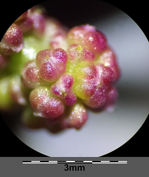 seitliche Blüten mit 3 Perigonblättern, reife Früchte rotbraun