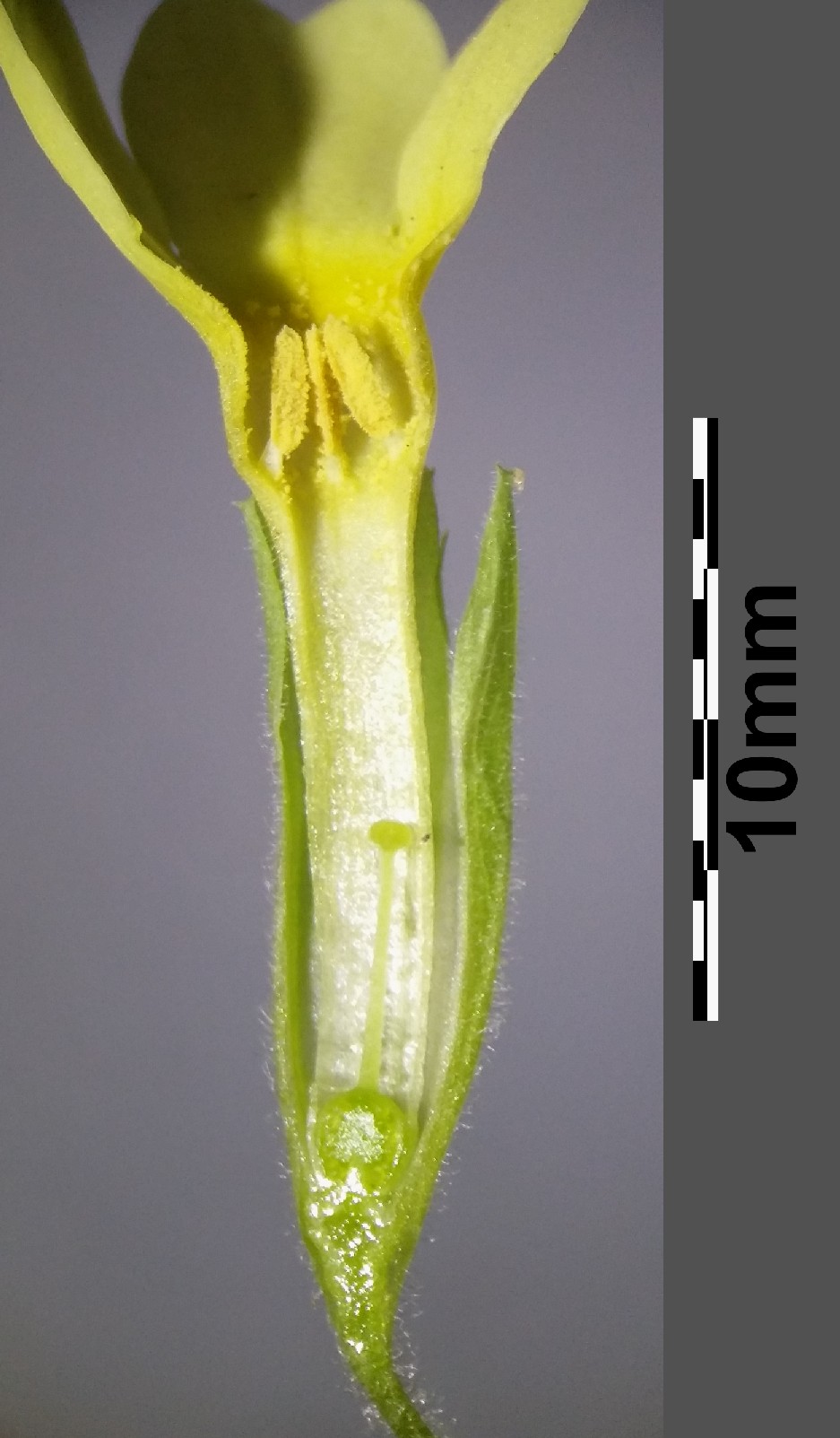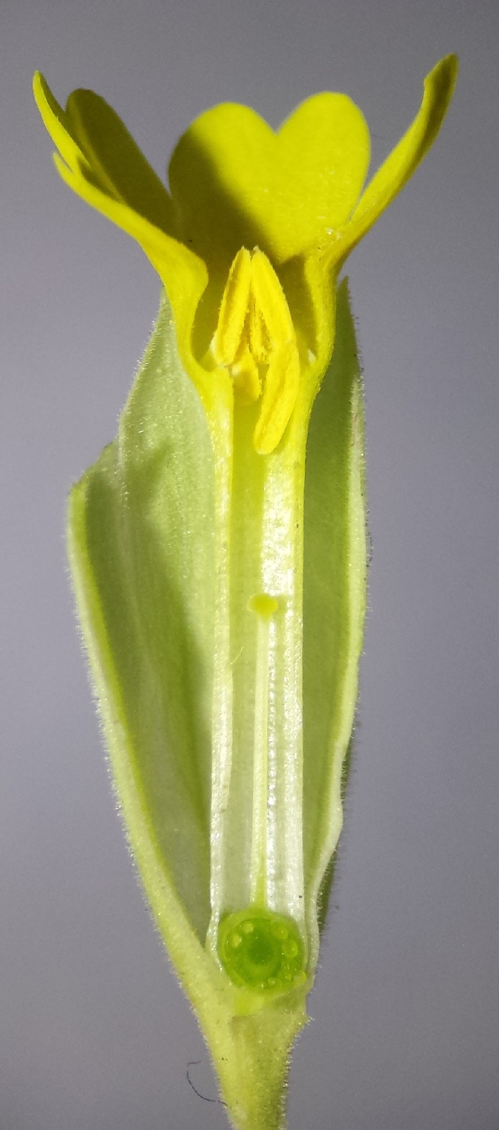 Kapsel so lang oder länger als der Kelch Blüten hellgelb, nur bei einer spanischen Unterart auch dottergelb Kelch der Kronröhre anliegend, an den Kanten dunkler > 4