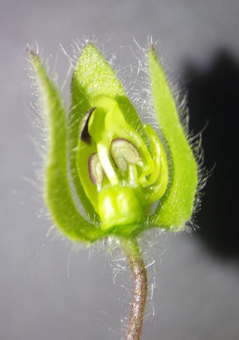 Stängel und Blätter mit zottigen, klebrigen, drüsigen Haaren