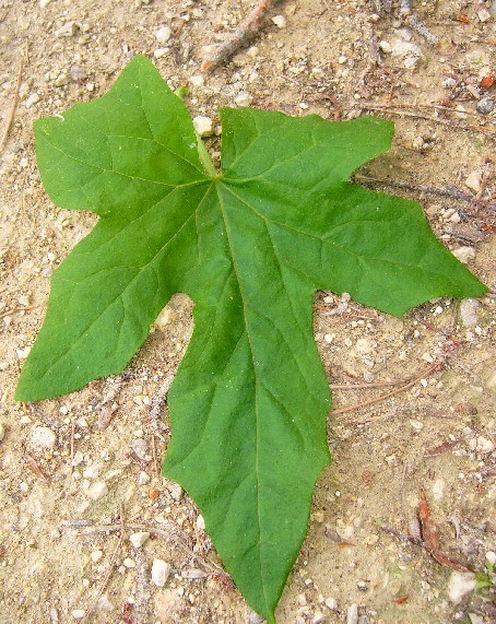 Blätter bis 12 cm lang, 1 cm breit, handförmig (3) 5 (7)- lappig,