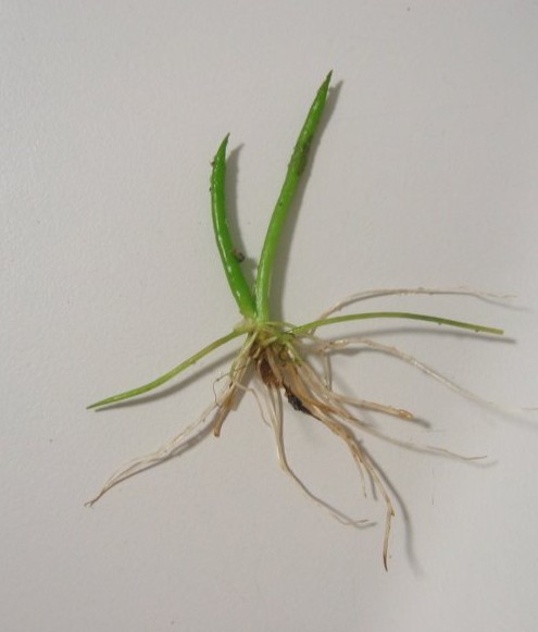 1 Pflanze ohne Blüten oder Früchte, Wurzeln schwarz