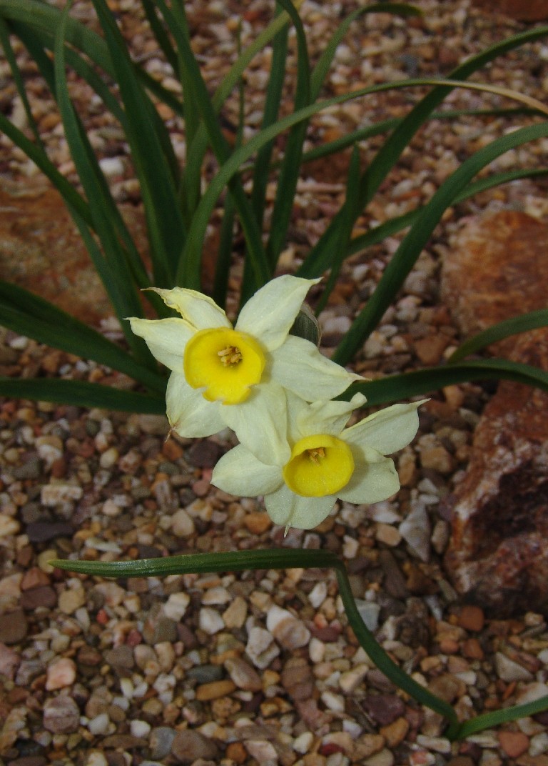 2 Perigonblätter cremeweiß, Nebenkrone gelb